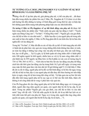 Tư tưởng của C.Mác, Ph.Ăngghen và V.I Lênin về sự bất bình đẳng và giải phóng phụ nữ