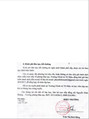 Căn cứ Chương trình đào tạo cán bộ lãnh đạo của Đảng, chính quyền, đoàn thể nhân dân cấp cơ sở (Hệ Trung cấp lý luận chính trị) do Học viện Chính trị Quốc gia Hồ Chí Minh ban hành ngày 11/12/2002 theo Quyết định số 484/2002/QĐ-HVCTQG của Giám đốc Học viện Chính trị Quốc gia Hồ Chí Minh; Căn cứ Kế hoạch của Hiệu trưởng Trường Chính trị Tô Hiệu triển khai kế hoạch đào tạo cán bộ quản lý theo chương trình của Học viện Chính trị - Hành chính Quốc gia Hồ Chí Minh;