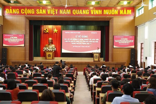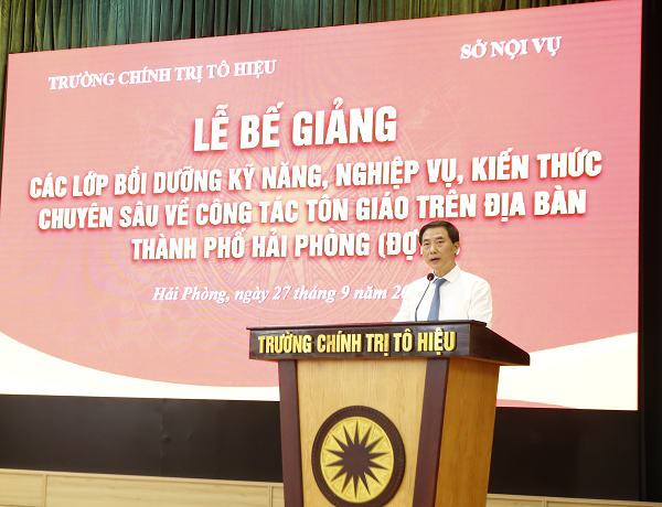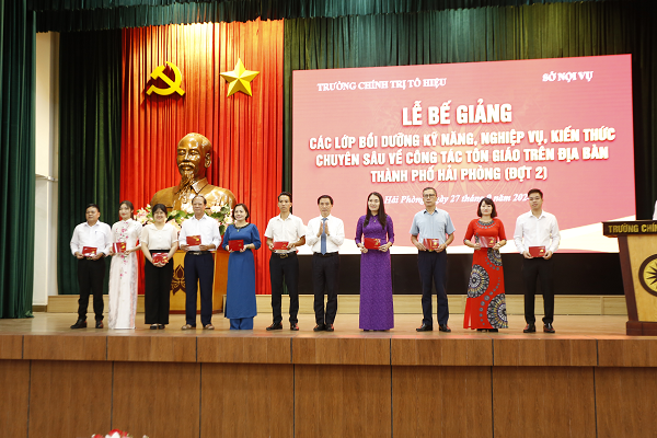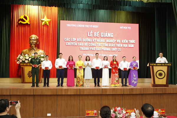 Lớp bồi dưỡng kỹ năng, nghiệp vụ, kiến thức chuyên sâu về công tác tôn giáo trên địa bàn thành phố năm 2024 (đợt 2) gồm 4 lớp được khai giảng ngày 23/9/2024, với tổng số 242 học viên. Các học viên đã được nghiên cứu các chuyên đề như: Quan điểm của Đảng, chính sách, pháp luật của Nhà nước về tín ngưỡng, tôn giáo và một số vấn đề cần quan tâm trong quá trình thực hiện quan điểm của Đảng, chính sách pháp luật của Nhà nước về tín ngưỡng, tôn giáo. Tín ngưỡng và tình hình hoạt động tín ngưỡng ở Việt Nam và Hải Phòng. Các hiện tượng tôn giáo mới ở Việt Nam và Hải Phòng hiện nay, những vấn đề cần quan tâm trong công tác quản lý. Kỹ năng, nghiệp vụ tiếp cận và xử lý thông tin trong lĩnh vực tín ngưỡng, tôn giáo. Quản lý Nhà nước về tín ngưỡng, tôn giáo trên địa bàn thành phố Hải Phòng hiện nay... Các học viên cũng được nghe báo cáo thực tiễn về một số vấn đề về thực hiện công tác vận động, đoàn kết các tôn giáo tại Hải Phòng.