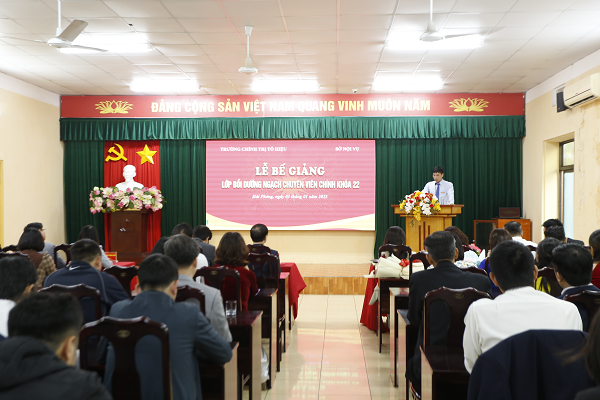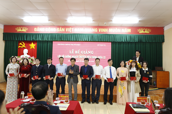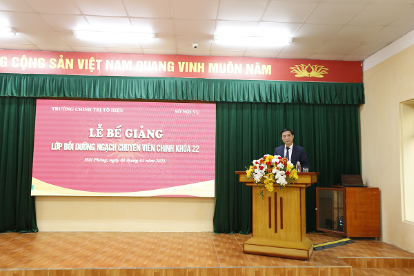 Chiều ngày 03/01, Trường Chính trị Tô Hiệu tổ chức Lễ bế giảng lớp Bồi dưỡng ngạch chuyên viên chính khóa 22. Dự Lễ bế giảng : TS. Nguyễn Kim Pha, Bí thư Đảng ủy, Hiệu trưởng Trường Chính trị Tô Hiệu; đồng chí Hoàng Văn Đức, Phó Giám đốc Sở Nội vụ thành phố; các đồng chí Phó Hiệu trưởng Trường cùng đại diện lãnh đạo các khoa, phòng, giảng viên, viên chức Trường Chính trị Tô Hiệu và toàn thể học viên của Lớp.