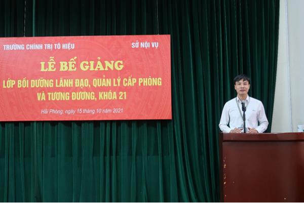 Sáng ngày 15/10, Trường Chính trị Tô Hiệu phối hợp với Sở Nội vụ thành phố Hải Phòng tổ chức Lễ bế giảng lớp Bồi dưỡng lãnh đạo, quản lý cấp phòng và tương đương, khóa 21. Tới dự có các đồng chí: Nguyễn Văn Hiểu, Bí thư Đảng ủy, Hiệu trưởng Trường; đồng chí Đỗ Hoàng Chính, Phó trưởng phòng Công chức - viên chức, Sở nội vụ; đại diện lãnh đạo các khoa, phòng cùng toàn thể học viên của lớp.
