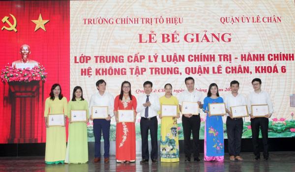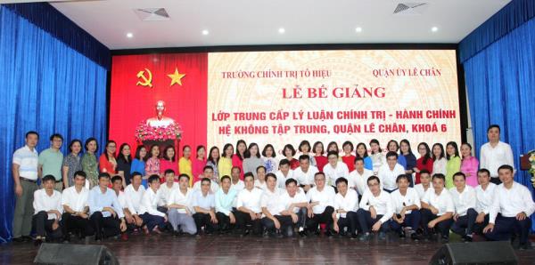 Lớp Trung cấp Lý luận chính trị - hành chính, hệ không tập trung, quận Lê Chân, khóa 6 khai giảng ngày 08/12/2018 gồm gồm 72 học viên là lãnh đạo các cơ quan Đảng, chính quyền, tổ chức đoàn thể quận và cán bộ dự nguồn các chức danh lãnh đạo, quản lý các đơn vị cơ sở. Sau hơn một năm học tập, các học viên được nghiên cứu, học tập 10 môn học theo quy định của Học viện chính trị quốc gia Hồ Chí Minh. Qua đó, giúp học viên nâng cao quan điểm lập trường tư tưởng, niềm tin vào sự lãnh đạo của Đảng và công cuộc đổi mới; đồng thời, trang bị phương pháp luận khoa học để giải quyết những vấn đề đặt ra trong hoạt động thực tiễn. Trong khóa học, học viên thực hiện tốt việc kiểm tra các học phần, thi hết môn, thi tốt nghiệp. Kết thúc khóa học, 100% học viên của lớp đủ điều kiện tốt nghiệp, được cấp Bằng Trung cấp lý luận chính trị - hành chính. Xếp loại học tập toàn khóa: 01 học viên xếp loại xuất sắc (1,4 %), 45 học viên xếp loại giỏi (62,5%), 26 học viên xếp loại khá (36,1%). 07 học viên tiêu biểu, có thành tích học tập và rèn luyện tốt, được tập thể bình xét vinh dự được Hiệu trưởng khen thưởng.