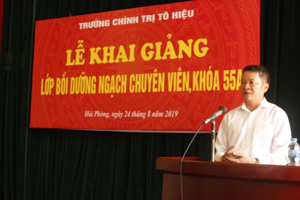Sáng ngày 24/8/2019, Trường Chính trị Tô Hiệu tổ chức Lễ khai giảng lớp Bồi dưỡng ngạch chuyên viên, khóa 55A. Dự Lễ khai giảng có các đồng chí: Nguyễn Văn Kính - Phó Bí thư Đảng ủy, Phó Hiệu trưởng Trường; Nguyễn Thị Hải Hà - Phó Hiệu trưởng Trường; đại diện lãnh đạo phòng Quản lý đào tạo và Nghiên cứu khoa học cùng toàn thể các học viên.
