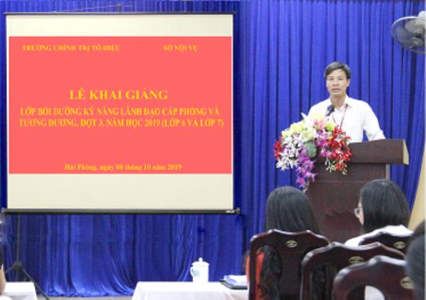 Sáng ngày 08/10/2019, Trường Chính trị Tô Hiệu phối hợp với Sở Nội vụ Hải Phòng tổ chức Lễ khai giảng lớp Bồi dưỡng kỹ năng lãnh đạo cấp phòng và tương đương, đợt 3 năm 2019. Dự Lễ khai giảng có các đồng chí: Nguyễn Văn Hiểu - Bí thư Đảng ủy, Hiệu trưởng Trường Chính trị Tô Hiệu; đồng chí Nguyễn Thị Thủy - Phó Trưởng phòng Công chức - Viên chức, Sở Nội vụ thành phố; đại diện lãnh đạo các khoa, phòng và học viên của lớp.