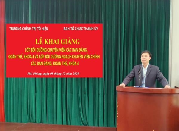 Sáng ngày 08/12/2020, Trường Chính trị Tô Hiệu phối hợp với Ban tổ chức Thành ủy tổ chức Lễ khai giảng lớp lớp Bồi dưỡng ngạch chuyên viên, các ban Đảng, đoàn thể, khóa 4; Bồi dưỡng ngạch chuyên viên chính các ban Đảng, đoàn thể, khóa 4. Tham dự Lễ khai giảng có các đồng chí: Nguyễn Văn Hiểu - Bí thư Đảng ủy, Hiệu trưởng Trường Chính trị Tô Hiệu; đại diện lãnh đạo Phòng Chính sách - Tổng hợp, Ban tổ chức Thành ủy; đại diện lãnh đạo các khoa, phòng và học viên của các lớp.