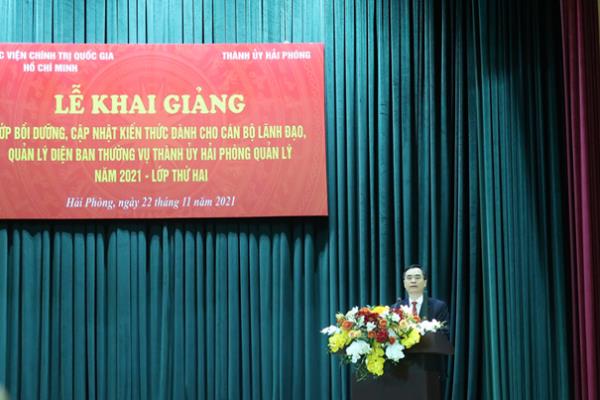 Sáng ngày 22/11, tại Trường Chính trị Tô Hiệu, Ban Thường vụ Thành uỷ Hải Phòng phối hợp với Học viện Chính trị quốc gia Hồ Chí Minh tổ chức khai giảng lớp bồi dưỡng, cập nhật kiến thức dành cho cán bộ lãnh đạo, quản lý diện Ban Thường vụ Thành uỷ quản lý, năm 2021 (lớp thứ hai).