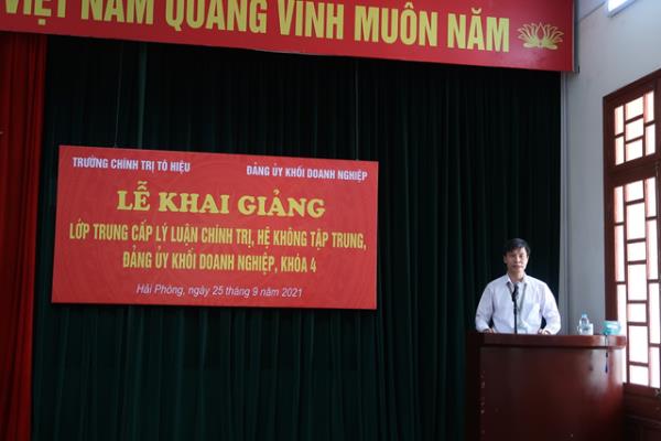 Sáng 25/9/2021, Trường Chính trị Tô Hiệu phối hợp với Đảng ủy Khối Doanh nghiệp thành phố tổ chức Lễ Khai giảng lớp Trung cấp Lý luận chính trị, hệ không tập trung, Đảng ủy Khối Doanh nghiệp, khóa 4.