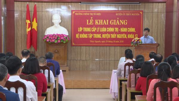 Chiều ngày 28/10/2020, Trường Chính trị Tô Hiệu phối hợp với Huyện ủy Thủy Nguyên tổ chức Lễ khai giảng lớp Trung cấp lý luận chính trị - hành chính, hệ không tập trung, huyện Thủy Nguyên khóa 17. Tới dự Lễ khai giảng, về phía Trường Chính trị Tô Hiệu có các đồng chí: Nguyễn Văn Hiểu - Bí thư Đảng ủy, Hiệu trưởng Trường; lãnh đạo, giảng viên, chuyên viên các khoa, phòng Trường. Về phía Huyện ủy Thủy Nguyên có các đồng chí: Nguyễn Thành Lung - Phó Bí thư Thường trực Huyện ủy, Chủ tịch HĐND huyện; Lê Nam Thắng - UVBTV, Trưởng Ban Tuyên giáo, Giám đốc Trung tâm chính trị huyện; lãnh đạo các Ban Xây dựng Đảng, VP Huyện ủy, Phòng Nội vụ huyện, Trung tâm Trung tâm chính trị huyện và học viên của lớp.