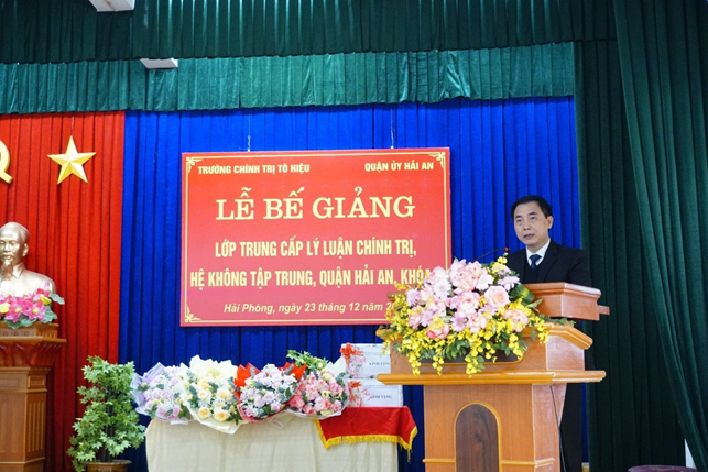Sáng ngày 23/12, Trường Chính trị Tô Hiệu phối hợp với Thường trực Quận uỷ Hải An tổ chức Lễ bế giảng lớp Trung cấp lý luận chính trị, hệ không tập trung, quận Hải An, khóa 6.