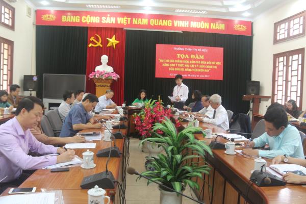 Thực hiện Kế hoạch kỷ niệm 35 năm Ngày Nhà giáo Việt Nam (20/11/1982 - 20/11/2017), chiều ngày 16/11/2017, Trường Chính trị Tô Hiệu tổ chức tọa đàm “Vai trò của giảng viên, báo cáo viên đối với việc nâng cao ý thức học tập lý luận chính trị của cán bộ, đảng viên hiện nay”. Tham dự tọa đàm có các đồng chí: Trần Thị Bích Hằng - Bí thư Đảng ủy, Hiệu trưởng Trường; các đồng chí Phó Hiệu trưởng; giảng viên thỉnh giảng, báo cáo viên cùng toàn thể cán bộ, giảng viên, chuyên viên các khoa, phòng Trường.