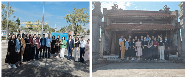 Đoàn nghiên cứu chụp ảnh lưu niệm tại Đền thờ Khúc Thừa Dụ