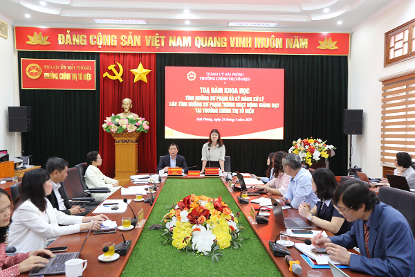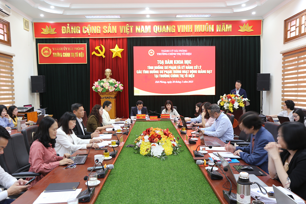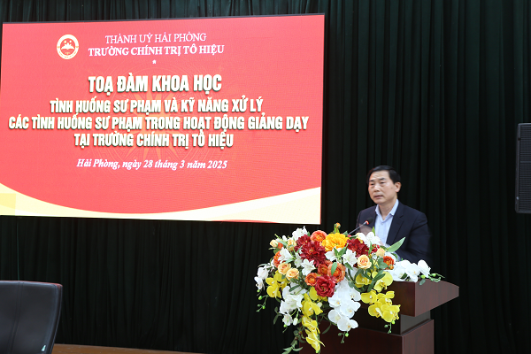 Sáng ngày 28/3, Trường Chính trị Tô Hiệu tổ chức Tọa đàm khoa học với chủ đề: “Tình huống sư phạm và kỹ năng xử lý các tình huống sư phạm trong hoạt động giảng dạy tại Trường Chính trị Tô Hiệu”. Dự tọa đàm có các đồng chí: TS. Nguyễn Kim Pha - Bí thư Đảng ủy, Hiệu trưởng Trường Chính trị Tô Hiệu - chủ trì; TS. Nguyễn Thanh Hương, Học viện Hành chính và Quản trị công, Học viện Chính trị quốc gia Hồ Chí Minh - đồng chủ trì; các Phó Hiệu trưởng Trường, lãnh đạo các khoa phòng và cùng toàn thể đội ngũ giảng viên nhà trường.
