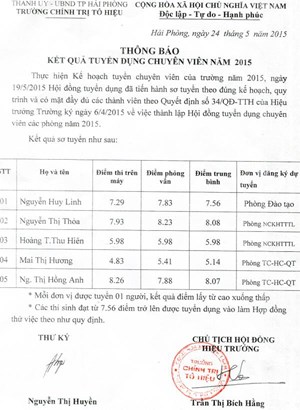 Thông báo kết quả tuyển dụng chuyên viên năm 2015