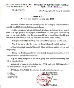 Thông báo về việc xuất bản nội san số 2 năm 2014