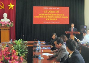 Thực hiện quyết định của Hiệu trưởng Trường Chính trị Tô Hiệu về việc mở lớp Trung cấp lý luận chính trị - hành chính, hệ đào tạo tập trung, khóa 28. Được sự nhất trí của Đảng ủy, Lãnh đạo trường, sáng ngày 04/12/2020, tại phòng Hội thảo đã diễn ra Lễ công bố các quyết định thành lập Chi bộ, Chi đoàn, Ban cán sự và ký giao ước thi đua lớp Trung cấp lý luận chính trị - hành chính, hệ tập trung, khóa 28.