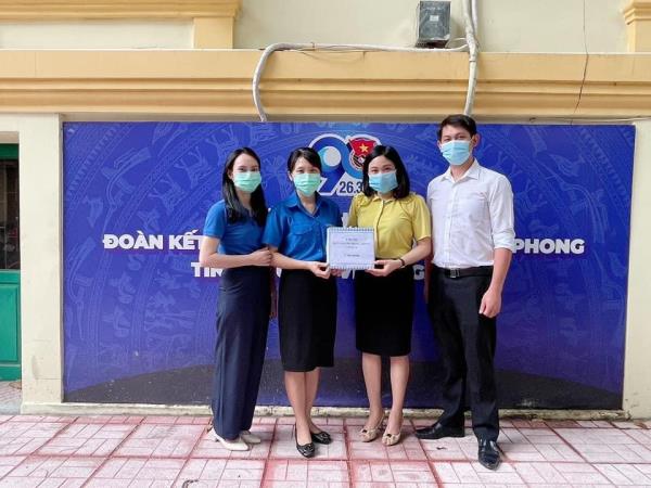 Bí thư Đoàn Trường trao số tiền 7.300.000 đồng tới Đoàn Khối các cơ quan thành phố ủng hộ vào Quỹ vắc-xin phòng chống Covid-19