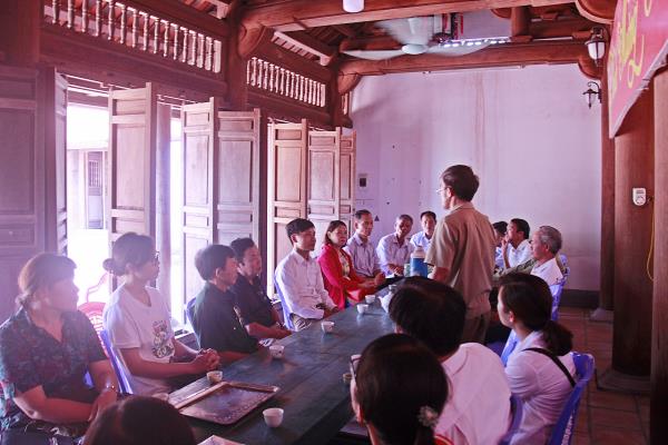 Đến thăm đình Trung Bản, Đoàn tham quan và nghe giới thiệu về pho tượng thờ Hưng Đạo Đại Vương Trần Quốc Tuấn được đánh giá là pho tượng về Trần Hưng Đạo đẹp nhất Việt Nam với tư thế ngồi, tay trái đặt lên đùi, tay phải đang cầm cây trâm, mái tóc phía sau dài xoã xuống ngang lưng.