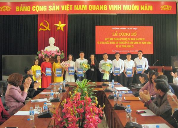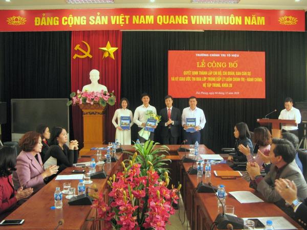 Thực hiện quyết định của Hiệu trưởng Trường Chính trị Tô Hiệu về việc mở lớp Trung cấp lý luận chính trị - hành chính, hệ đào tạo tập trung, khóa 28. Được sự nhất trí của Đảng ủy, Lãnh đạo trường, sáng ngày 04/12/2020, tại phòng Hội thảo đã diễn ra Lễ công bố các quyết định thành lập Chi bộ, Chi đoàn, Ban cán sự và ký giao ước thi đua lớp Trung cấp lý luận chính trị - hành chính, hệ tập trung, khóa 28.