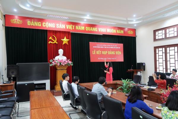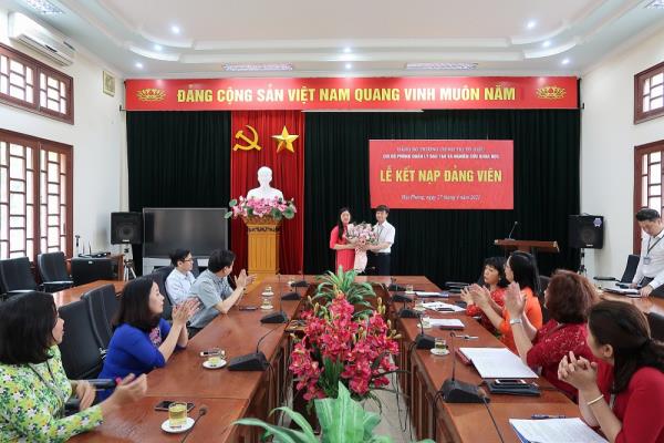 Thực hiện Quyết định số 134-QĐ/ĐUK, ngày 09/4/2021 của Đảng ủy Khối Các cơ quan Thành phố về kết nạp đảng viên, được sự nhất trí của Đảng ủy Trường Chính trị Tô Hiệu, sáng ngày 27/4/2021, chi bộ phòng Quản lý đào tạo và nghiên cứu khoa học tổ chức Lễ kết nạp đảng viên cho quần chúng Nguyễn Thị Hồng Anh, chuyên viên của Phòng.