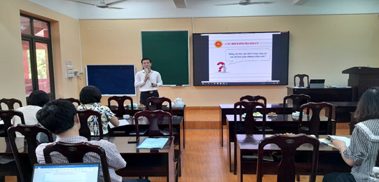 Chiều ngày 03/10, Khoa Xây dựng Đảng tổ chức thông qua bài “Công tác dân vận của tổ chức cơ sở đảng” thuộc phần học Xây dựng Đảng, chương trình Trung cấp lý luận chính trị cho đồng chí Nguyễn Văn Thông, giảng viên của khoa. Tham dự buổi thông qua bài có sự tham dự đông đủ của các giảng viên trong khoa; đồng chí Nguyễn Đình Hoàng - Trưởng khoa chủ trì.