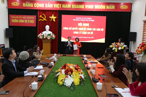 áng ngày 05/01/2022, tại Phòng Hội thảo, Trường Chính trị Tô Hiệu đã diễn ra Hội nghị công bố quyết định về công tác cán bộ khoa Lý luận cơ sở. Dự Hội nghị có Tiến sĩ Nguyễn Kim Pha, Bí thư Đảng ủy, Hiệu trưởng Trường; Tiến sĩ Nguyễn Thị Hải Hà, Phó Bí thư Đảng ủy, Phó Hiệu trưởng Trường, cùng lãnh đạo các khoa, phòng và toàn thể cán bộ, viên chức trường.