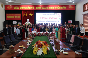 Sáng ngày 20/10, Trường Chính trị Tô Hiệu tổ chức gặp mặt kỷ niệm 92 năm ngày thành lập Hội LHPN Việt Nam (20/10/1930 - 20/10/2022). Tham dự có các đồng chí: TS Nguyễn Kim Pha, Bí thư Đảng ủy, Hiệu trưởng Trường; TS Nguyễn Thị Hải Hà, Phó Bí thư Đảng ủy, Phó Hiệu trưởng Trường; TS Nguyễn Đình Hoàng, ĐUV, Trưởng khoa Xây dựng Đảng, Chủ tịch Công đoàn Trường; các đồng chí trong Đảng ủy, Ban Chấp hành Công đoàn Trường cùng toàn thể cán bộ, viên chức, lao động Trường.
