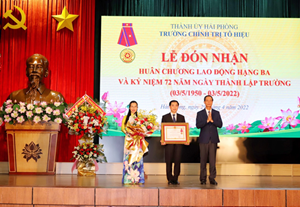 Sáng ngày 29/4, Trường Chính trị Tô Hiệu tổ chức Lễ đón nhận Huân chương Lao động hạng Ba và kỷ niệm 72 năm ngày thành lập Trường (03/5/1950 - 03/5/2022). Đến dự buổi Lễ có các đồng chí: Đỗ Mạnh Hiến, Phó Bí thư Thường trực Thành ủy; đồng chí Đào Khánh Hà, UVBTV, Trưởng Ban Tuyên giáo Thành ủy; đồng chí Đào Trọng Đức, UVBTV, Trưởng Ban Tổ chức Thành ủy; đồng chí Lê Khắc Nam, Phó Chủ tịch UBND thành phố;