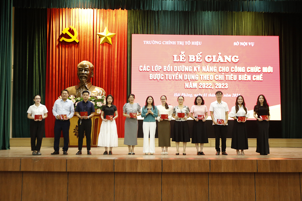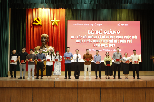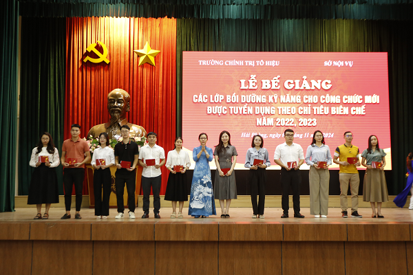 Chiều ngày 01/11, Trường Chính trị Tô Hiệu phối hợp với Sở Nội vụ tổ chức Lễ bế giảng các lớp Bồi dưỡng kỹ năng cho công chức mới được tuyển dụng theo chỉ tiêu biên chế năm 2022, 2023. Dự Lễ bế giảng có các đồng chí: Nguyễn Kim Pha, Hiệu trưởng Trường Chính trị Tô Hiệu; các Phó Hiệu trưởng Trường Chính trị Tô Hiệu cùng toàn thể cán bộ, giảng viên, viên chức Trường và học viên 2 lớp bồi dưỡng.