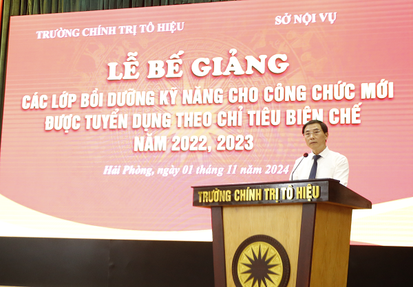 Lớp Bồi dưỡng kỹ năng cho công chức mới được tuyển dụng theo chỉ tiêu biên chế năm 2022, 2023 gồm 2 lớp được khai giảng ngày 28/10, với tổng số 130 học viên. Các học viên đã được nghiên cứu các chuyên đề như: Định hướng phát triển của thành phố Hải Phòng, yêu cầu đặt ra đối với động ngũ cán bộ, công chức thành phố; kỹ năng soạn thảo văn bản hành chính; kỹ năng soạn thảo văn bản quy phạm pháp luật; kỹ năng tổ chức các cuộc họp; kỹ năng lập và quản lý hồ sơ điện tử; kỹ năng sử dụng hệ thống phần mềm văn phòng điện tử, giải quyết thủ tục hành chính trên hệ thống Một cửa điện tử và Cổng Dịch vụ công thành phố.
