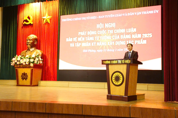 Sáng ngày 12/3, Trường Chính trị Tô Hiệu phối hợp với Ban Tuyên giáo và Dân vận Thành ủy tổ chức Hội nghị phát động Cuộc thi chính luận bảo vệ nền tảng tư tưởng của Đảng năm 2025 và tập huấn kỹ năng xây dựng tác phẩm.