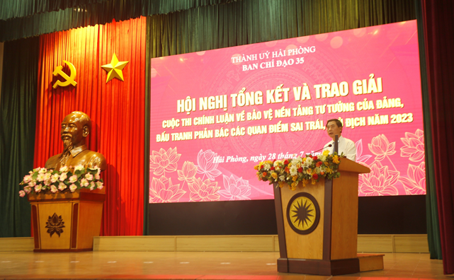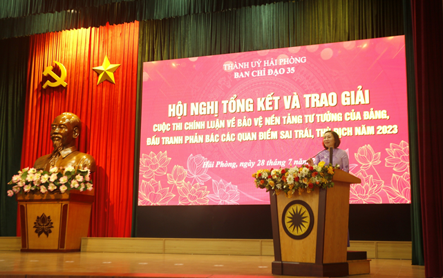 Phát biểu tại Hội nghị, đồng chí Đào Khánh Hà, UVBTV Thành ủy, Trưởng Ban Tuyên giáo Thành ủy, Phó Trưởng Ban Thường trực Ban Chỉ đạo 35 Thành phố nhấn mạnh: Mặc dù Cuộc thi phát động trong thời gian không dài, nhưng nhờ làm tốt công tác tuyên truyền, cuộc thi đã lan tỏa rộng rãi, nhận được sự nhiệt tình hưởng ứng tham gia của các cấp ủy Đảng, địa phương, đơn vị và đông đảo cán bộ, đảng viên, nhân dân. Thông qua cuộc thi giúp cán bộ, đảng viên, nhân dân nhận thức đầy đủ hơn bản chất và âm mưu, thủ đoạn của các thế lực thù địch và những quan điểm sai trai về tư tưởng chính trị, những hiện tượng tự diễn biến, tự chuyển hóa từ đó nâng cao hiệu quả công tác bảo vệ nền tảng tư tưởng của Đảng, đấu tranh phản bác các quan điểm sai trái, thù địch theo tinh thần Nghị quyết số 35 của Bộ Chính trị trên địa bàn thành phố.