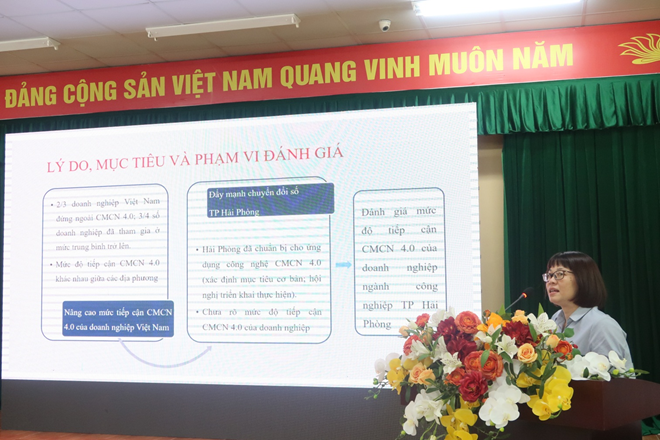Phát biểu Khai mạc Hội thảo, đồng chí Hoàng Minh Cường, Phó Chủ tịch UBND thành phố - chủ trì Hội thảo khẳng định: Hiện nay, chuyển đổi số là xu thế tất yếu, là động lực quan trọng cho phát triển kinh tế xã hội ở bất kỳ địa phương nào không chỉ riêng Hải Phòng, đây là thời cơ để thành phố bứt phá mạnh mẽ. Trong giai đoạn hiện nay chuyển đổi số thực sự cấp thiết mang lại nhiều lợi ích cho chính quyền, doanh nghiệp và cuộc sống. Đồng chí Phó Chủ tịch UBND thành phố cho biết, để đón đầu xu hướng chuyển đổi số, Ban Thường vụ Hải Phòng ban hành Nghị Quyết 03-NQ/TU ngày 26/10/2021 đặt mục tiêu đến năm 2025, định hướng đến năm 2030 kinh tế số chiếm 35% GRDP thành phố; năng suất lao động hàng năm tăng tối thiểu 16%; tạo ra các giá trị tăng trưởng mới từ kinh tế số với ba trụ cột kinh tế, gồm: công nghiệp công nghệ cao, cảng biển logistics và du lịch - thương mại. Vừa qua, thành phố đã triển khai hàng loạt các hoạt động truyền thông, hội thảo, hội nghị, chương trình xúc tiến giới thiệu, liên kết trên nhiều lĩnh vực để thúc đẩy chuyển đổi số mạnh mẽ trên cả 3 trụ cột chính quyến số, kinh tế số, xã hội số. Tuy nhiên, Phó Chủ tịch cũng nêu rõ với các hạ tầng như hiện tại, 76% số doanh nghiệp trên địa bàn thành phố còn đứng ngoài cuộc cách mạng công nghiệp 4.0; chỉ có khoảng 19% số doanh nghiệp mới tham gia cách mạng công nghiệp 4.0; tỷ lệ hồ sơ thực hiện theo hình thức trực tuyến của thành phố còn ở mức thấp; tỷ lệ hồ sơ quá hạn phát sinh nhiều ở một số lĩnh vực, đơn vị của thành phố…