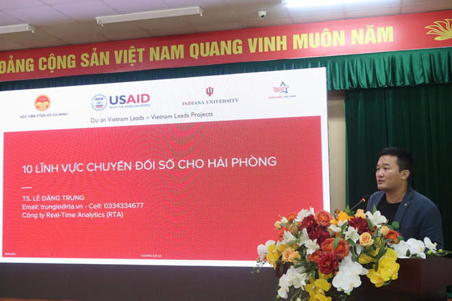 Tại Hội thảo, các đại biểu đã được nghe các chuyên gia về lĩnh vực Chuyển đổi số trình bày các chuyên đề: Tổng quan về chuyển đổi số và hàm ý đối với Hải Phòng; Chỉ số đánh giá kết quả cải cách phục vụ người dân và doanh nghiệp; Một số định hướng cải tiến cách thức đánh giá trong thời gian tới và hàm ý đối với Hải Phòng; Đánh giá mức độ chuyển đổi số của các doanh nghiệp Hải Phòng; Một số ứng dụng công nghệ số trong lĩnh vực an sinh xã hội và quản trị thực thi và và hàm ý đối với Hải Phòng. Các đại biểu đã tập trung trao đổi, thảo luận sôi nổi các vấn đề về tổng quan chuyển đổi số với Hải Phòng; các chỉ số đánh giá kết quả cải cách hành chính phục vụ người dân và doanh nghiệp từ thực trạng thành phố; đánh giá mức độ chuyển đổi số của thành phố và một số ứng dụng công nghệ số trong lĩnh vực an sinh xã hội và quản trị thực thi đối với thành phố Hải Phòng.