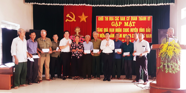 Thực hiện Kế hoạch hoạt động của Khối thi đua năm 2023, sáng ngày 17/5, Khối thi đua các ban, cơ quan Thành ủy tổ chức thăm, tặng quà cho nạn nhân chất độc da cam trên địa bàn các huyện Vĩnh Bảo, An Lão. Đây là hoạt động ý nghĩa của Khối hướng tới kỷ niệm 62 năm Ngày Vì nạn nhân chất độc da cam ở Việt Nam (10/8/1961 - 10/8/2023).