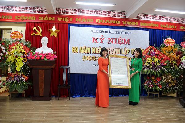 Phát biểu tại Lễ kỷ niệm, đồng chí Trần Thị Bích Hằng - Bí thư Đảng ủy, Hiệu trưởng Trường đã ôn lại những mốc son lịch sử trong chặng đường phát triển 69 năm của Trường. Trước những yêu cầu của công tác đào tạo, bồi dưỡng cán bộ trong thời kỳ mới, bên cạnh việc ghi nhận các kết quả đã đạt được trong thời gian qua, đồng chí cũng đề ra một số định hướng lớn cho sự phát triển của Trường trong thời gian tới nhằm sớm xây dựng Trường Chính trị Tô Hiệu thành Trường chính trị chuẩn và đóng góp xứng đáng vào công cuộc xây dựng, phát triển thành phố Hải Phòng trong thời kỳ công nghiệp hóa, hiện đại hóa đất nước.