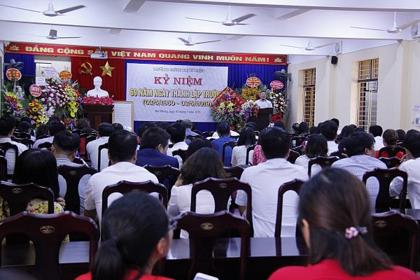 Chiều ngày 02/5, Trường Chính trị Tô Hiệu đã tổ chức kỷ niệm 69 năm ngày thành lập Trường (03/5/1950 - 03/5/2019). Tham dự có đồng chí Đào Khánh Hà - Ủy viên Thành ủy, Trưởng Ban Tuyên giáo Thành ủy; đồng chí Trần Thị Bích Hằng - Bí thư Đảng ủy, Hiệu trưởng Trường; các đồng chí nguyên lãnh đạo Trường qua các thời kỳ; các đồng chí Phó Hiệu trưởng; đại diện Ban Liên lạc hưu trí Trường; lãnh đạo các đơn vị cùng toàn thể cán bộ, viên chức, lao động trường.