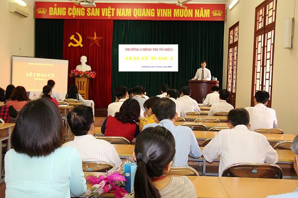 Thực hiện hoạt động Chào cờ định kì hàng tháng, 7h30’, ngày 01/4/2019, Trường Chính trị Tô Hiệu tổ chức Lễ Chào cờ và sinh hoạt dưới cờ đầu tháng. Tham dự buổi Lễ có đồng chí Trần Thị Bích Hằng - Bí thư Đảng ủy, Hiệu trưởng Trường; các đồng chí Phó Hiệu trưởng; Chủ tịch Công đoàn cùng toàn thể cán bộ, viên chức, người lao động nhà trường. Đồng chí Nguyễn Văn Hiểu - Phó Hiệu trưởng Trường chủ trì buổi Lễ.