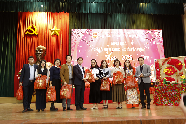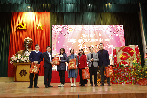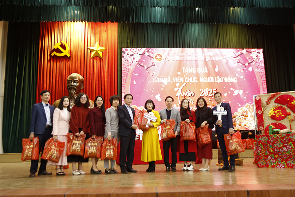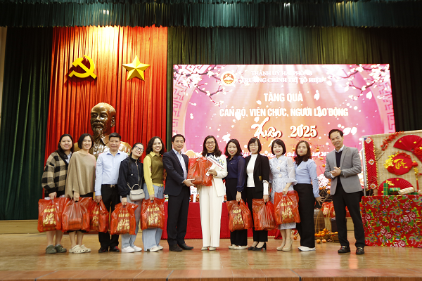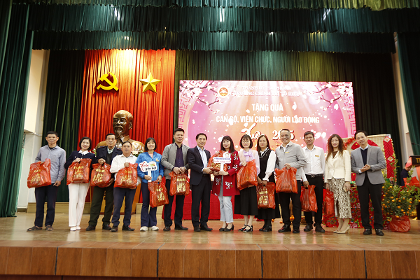 Lãnh đạo Trường trao tặng các phần quà Tết cho cán bộ, viên chức, người lao động Trường