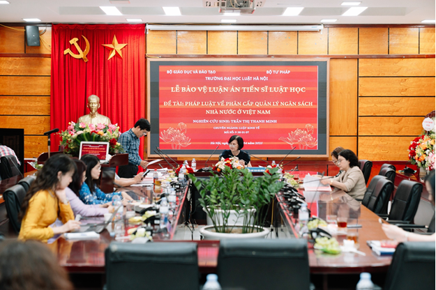 Tại Lễ bảo vệ, Hội đồng đánh giá luận án Tiến sĩ và các đại biểu tham dự đã nghe NCS Trần Thị Thanh Minh trình bày tóm tắt kết quả nghiên cứu; Hội đồng đánh giá luận án nhận xét về ý nghĩa khoa học và thực tiễn của luận án. Theo đó, về mặt lý luận, luận án đã làm rõ được những vấn đề lý luận về phân cấp quản lý ngân sách nhà nước và pháp luật về phân cấp quản lý ngân sách nhà nước từ các khía cạnh: Nội dung, hình thức, nguyên tắc, những yếu tố ảnh hưởng tới phân cấp quản lý ngân sách nhà nước. Về mặt thực tiễn, Luận án đã phân tích và đánh giá được thực trạng pháp luật và thực tiễn thi hành pháp luật đồng thời đưa ra những định hướng, giải pháp hoàn thiện và nâng cao hiệu quả thực hiện pháp luật về phân cấp quản lý ngân sách nhà nước ở Việt Nam.