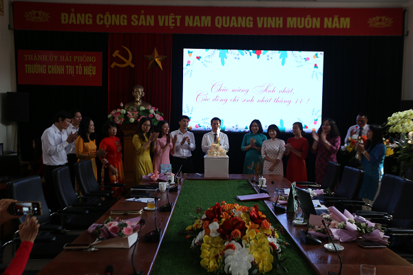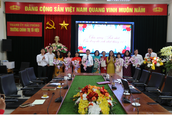 Khép lại buổi chào cờ đầu tháng, Công đoàn Trường tặng hoa, quà chúc mừng các đồng chí có sinh nhật trong tháng./.