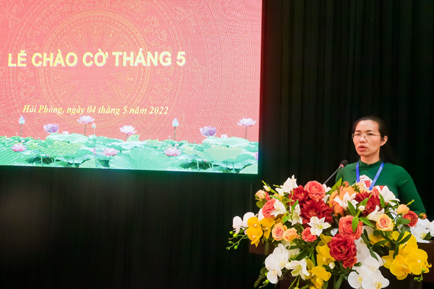 Sau nghi lễ chào cờ, thay mặt Đảng ủy, Lãnh đạo Trường, đồng chí Nguyễn Thị Hải Hà đã đánh giá công tác tháng 4 và triển khai nhiệm vụ công tác tháng 5 của Nhà trường. Theo đó, trong tháng 4, Trường tổ chức triển khai các công việc của Hội thảo khoa học cấp Bộ, Tọa đàm khoa học cấp thành phố; tổ chức thành công Lễ đón nhận Huân chương Lao động hạng Ba và kỷ niệm 72 năm ngày thành lập Trường; chủ động, linh hoạt trong thực hiện các nhiệm vụ đào tạo, bồi dưỡng, nghiên cứu khoa học, nghiên cứu thực tế, hành chính quản trị…Tháng 5, Trường tiếp tục thực hiện các nhiệm vụ hoạt động đào tạo, bồi dưỡng theo kế hoạch; tổ chức Tọa đàm khoa học cấp thành phố; Hội thảo khởi động chuẩn bị cho Hội thảo khoa học cấp Bộ; hoàn thiện và trình Thường trực Thành ủy phê duyệt đề án trường chính trị chuẩn; thực hiện các nhiệm vụ khác theo kế hoạch.