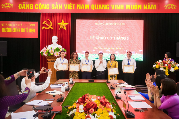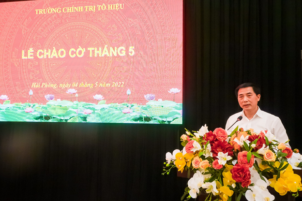 Sáng ngày 04/5, Trường Chính trị Tô Hiệu tổ chức Lễ Chào cờ, sinh hoạt dưới cờ tháng 5. Tham dự có các đồng chí: TS Nguyễn Kim Pha, Bí thư Đảng ủy, Hiệu trưởng Trường; TS Nguyễn Thị Hải Hà, Phó Bí thư Đảng ủy, Phó Hiệu trưởng Trường cùng toàn thể cán bộ, viên chức, người lao động Nhà trường.