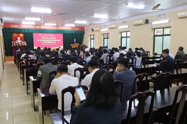 Dự Lễ khai giảng tại cơ sở 1 có các đồng chí: TS. Trần Thị Thanh Minh, Phó Hiệu trưởng Trường; đại diện lãnh đạo các khoa, phòng, cán bộ, viên chức Nhà trường, cùng toàn thể học viên của lớp bồi dưỡng.