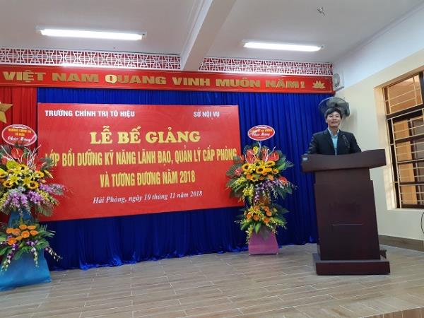 Sáng ngày 10/11/2018, Trường Chính trị Tô Hiệu phối hợp với Sở Nội vụ tổ chức Lễ bế giảng lớp bồi dưỡng kỹ năng lãnh đạo quản lý cấp phòng và tương đương năm 2018 cho 56 học viên đến từ các đơn vị sở, ngành và các quận, huyện trong thành phố. Dự Lễ bế giảng có đồng chí Nguyễn Văn Hiểu - Phó Hiệu trưởng Trường; lãnh đạo đại diện các khoa, phòng nhà trường và học viên của lớp học.