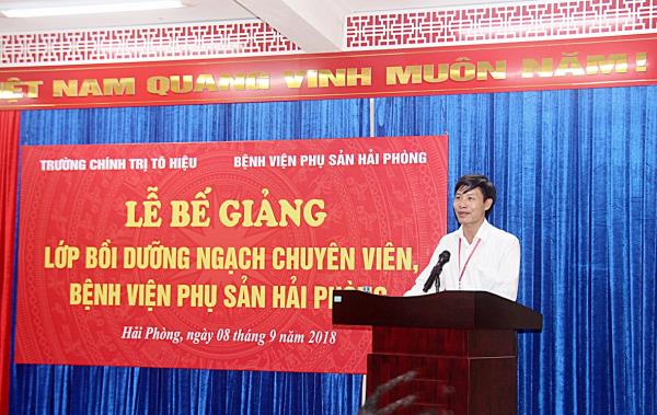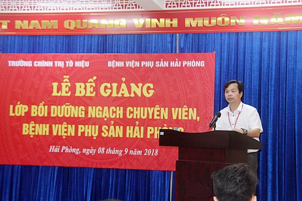 Phát biểu bế giảng lớp học, đồng chí Nguyễn Văn Hiểu - Phó Hiệu trưởng Trường chúc mừng và đánh giá cao kết quả học tập, rèn luyện của các đồng chí học viên trong suốt khóa học. Đồng chí nhấn mạnh việc bồi dưỡng kiến thức quản lý nhà nước cho đội ngũ cán bộ, viên chức, công chức trong hệ thống chính trị nói chung và các cơ quan, đơn vị sự nghiệp của nhà nước là việc làm cần thiết, mang tính bắt buộc, nhằm chuẩn hóa, nâng cao kỹ năng chuyên môn, nghiệp vụ của đội ngũ cán bộ công chức, viên chức, nâng cao chất lượng, hiệu quả hoạt động của các đơn vị sự nghiệp công lập hiện nay. Việc triển khai lớp bồi dưỡng không những đã bám sát quy định về khung chương trình của Bộ Nội vụ, mà còn bổ sung những kiến thức thực tiễn phong phú, đa dạng về hoạt động quản lý nhà nước tại Hải Phòng, nhất là các hoạt động quản lý nhà nước theo ngành và lãnh thổ - như là những bài học kinh nghiệm quý báu, giúp học viên rút kinh nghiệm, nâng cao nhận thức về hoạt động quản lý nhà nước và khả năng vận dụng trong thực tiễn công tác. Đồng chí mong muốn, sau khóa học, các học viên tiếp tục nghiên cứu lý luận, rèn luyện, nâng cao trình độ chuyên môn, nghiệp vụ, phẩm chất chính trị, vận dụng tốt kiến thức được trang bị vào thực tiễn công tác, nâng cao chất lượng phục vụ, hiệu quả hoạt động của Bệnh viện Phụ sản Hải Phòng và Ngành Y tế thành phố đáp ứng yêu cầu hiện nay. Đồng chí chân thành cảm ơn sự quan tâm, tạo điều kiện về mọi mặt của các đồng chí lãnh đạo Bệnh viện Phụ sản Hải Phòng, cũng như sự nỗ lực của mỗi đồng chí học viên đã tạo nên sự thành công của khóa học.