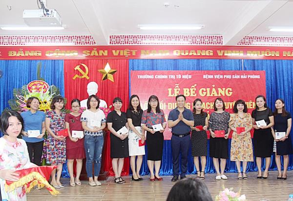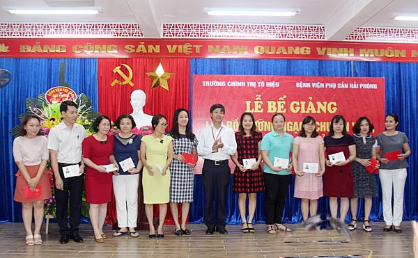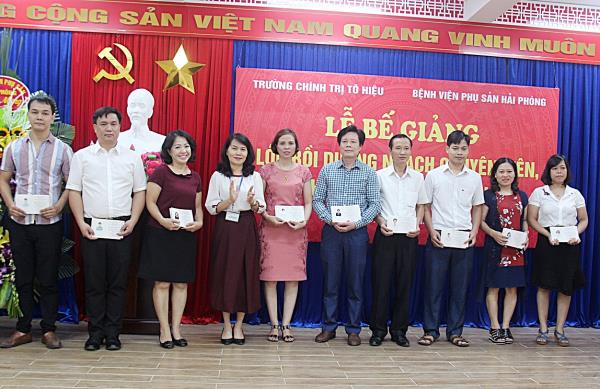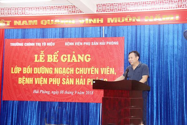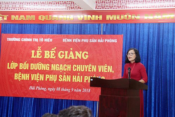 Sáng ngày 08/9/2018, tại Hội trường nhà B1, Trường Chính trị Tô Hiệu tổ chức Lễ bế giảng Lớp Bồi dưỡng ngạch chuyên viên, Bệnh viện Phụ sản Hải Phòng. Dự buổi Lễ có các đồng chí: Trần Thị Bích Hằng - Bí thư Đảng ủy, Hiệu trưởng; Bác sỹ Vũ Văn Tâm - Giám đốc Bệnh viện Phụ sản Hải Phòng; Nguyễn Văn Hiểu - Phó Hiệu trưởng Trường Chính trị Tô Hiệu; đại diện các khoa, phòng, đơn vị chức năng Trường Chính trị Tô Hiệu và Bệnh viện Phụ sản Hải phòng cùng toàn thể học viên lớp học.