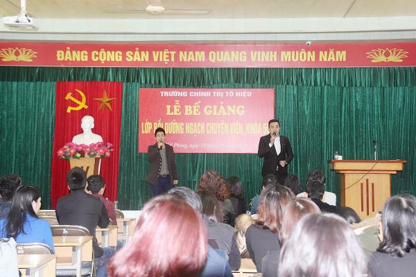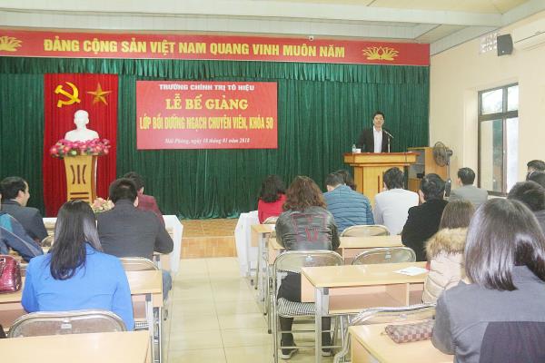 Sáng ngày 18/01/2018, tại Hội trường số 4, Trường Chính trị Tô Hiệu đã tổ chức Lễ bế giảng lớp Bồi dưỡng ngạch Chuyên viên, khoá 50. Tham dự Lễ bế giảng có đồng chí Trần Thị Bích Hằng - Bí thư Đảng ủy, Hiệu trưởng nhà trường. Các đồng chí là đại diện lãnh đạo Phòng Công chức, viên chức – Sở Nội vụ Hải Phòng; đại diện lãnh đạo các đơn vị khoa, phòng và giảng viên Trường Chính trị Tô Hiệu, cùng toàn thể học viên lớp Bồi dưỡng ngạch Chuyên viên, khóa 50.