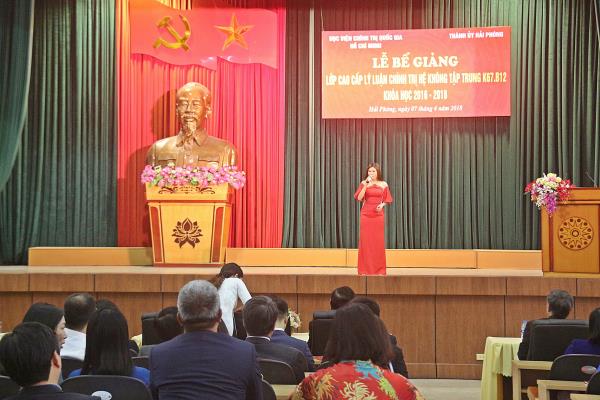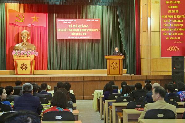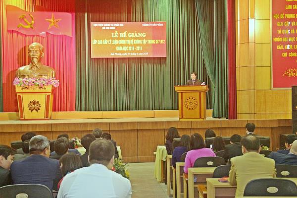 Phát biểu Bế giảng lớp học, PGS.TS Nguyễn Viết Thảo - Phó Giám đốc Học viện Chính trị quốc gia Hồ Chí Minh, Trưởng Ban Tổ chức lớp học đã biểu dương và chúc mừng kết quả học tập chung của lớp. Đồng chí mong muốn, sau khóa học các học viên tiếp tục nghiên cứu, vận dụng tốt kiến thức được trang bị trong thực tiễn công tác, nâng cao chất lượng, hiệu quả hoạt động của mỗi cơ quan, đơn vị, góp phần xây dựng và phát triển Thành phố Cảng Hải Phòng trong giai đoạn hiện nay. Đồng chí nhấn mạnh, mỗi học viên là một trong những nguồn lực quan trọng của Thành phố, vì vậy, phải không ngừng phấn đấu để xứng đáng với niềm tin của nhân dân, sự tin tưởng của Thành phố và đơn vị công tác.