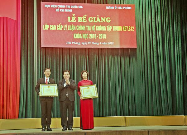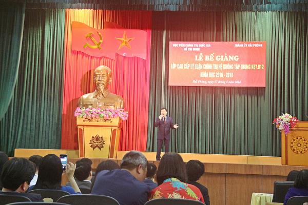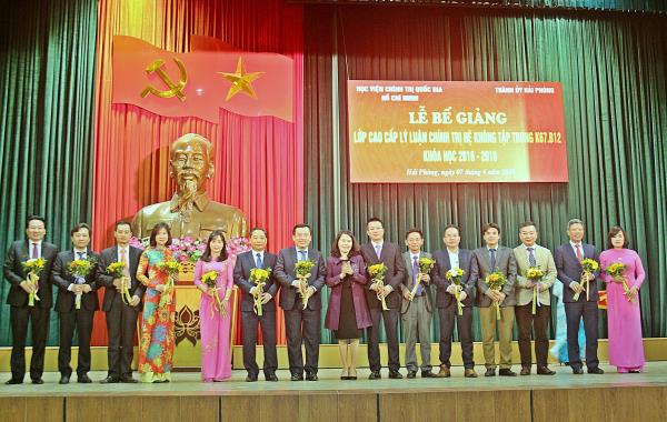 Chiều ngày 07/4/2018, tại Hội trường lớn Trường Chính trị Tô Hiệu, Học viện Chính trị quốc gia Hồ Chí Minh đã phối hợp với Thành ủy Hải Phòng tổ chức Lễ bế giảng Lớp Cao cấp lý luận chính trị, hệ không tập trung K67.B12, khóa học 2016 - 2018 do Học viện Chính trị quốc gia Hồ Chí Minh mở tại Thành phố Hải Phòng.