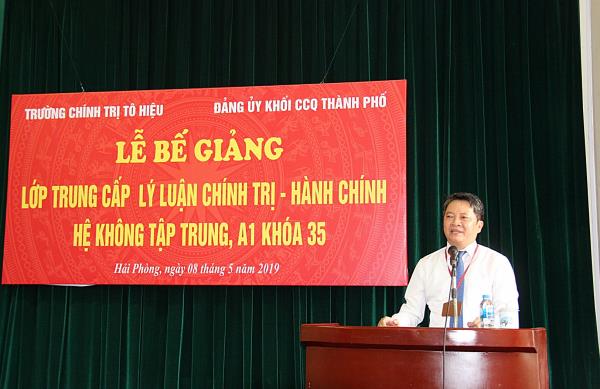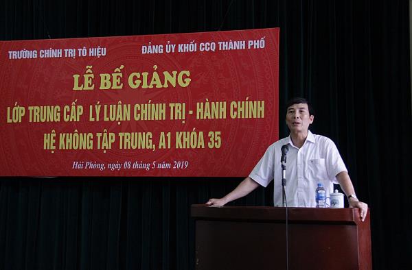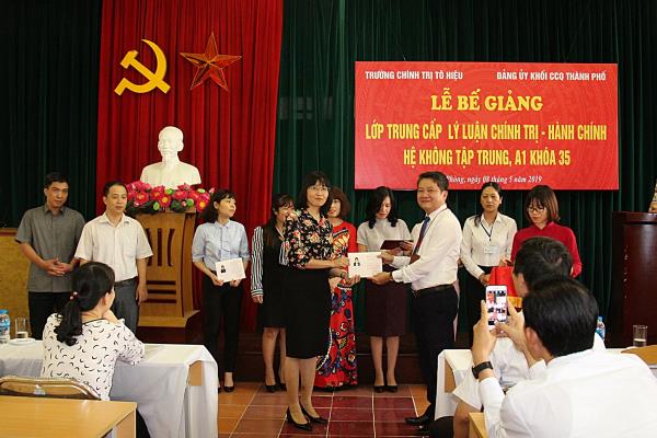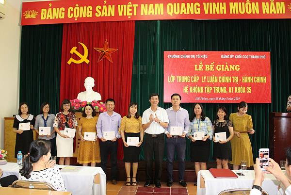 Chiều ngày 08/5/2019, Trường Chính trị Tô Hiệu phối hợp với Đảng ủy Khối Các cơ quan thành phố tổ chức Lễ bế giảng lớp Trung cấp lý luận CT - HC, hệ không tập trung, A1 khóa 35. Tới dự có các đồng chí: Nguyễn Thành Tô - Phó Bí thư Thường trực Đảng ủy Khối Các cơ quan thành phố; Nguyễn Văn Kính - Phó Bí thư Đảng ủy, Phó Hiệu trưởng Trường Chính trị Tô Hiệu; đại diện lãnh đạo các phòng, ban thuộc Đảng ủy Khối Các cơ quan thành phố và các khoa, phòng nhà trường.